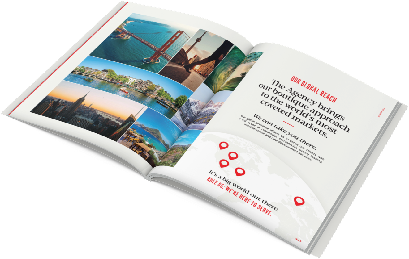 The Agency extends far beyond what a conventional brokerage firm offers. It envisions itself as both a lifestyle company committed to informing and connecting global communities and as a creative agency offering design, marketing and sales solutions for buyers, sellers, developers and investors across the globe.